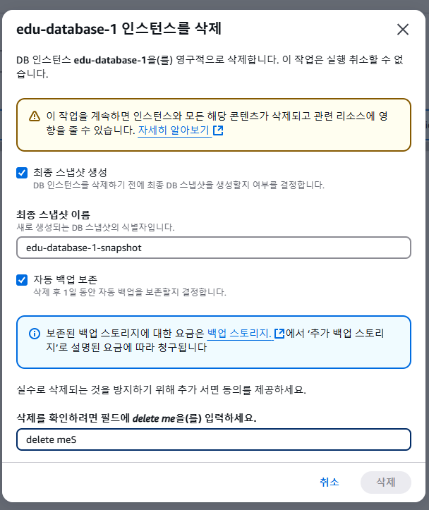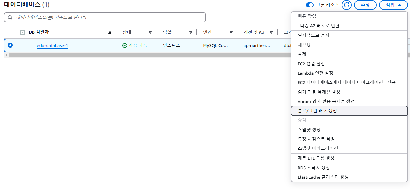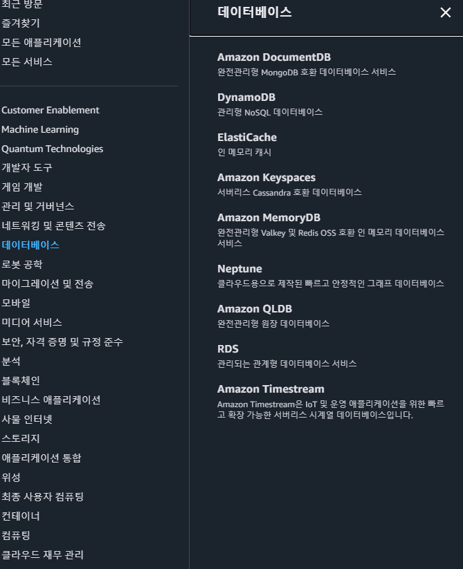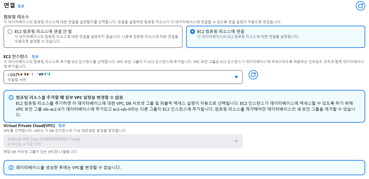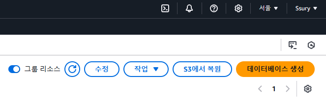 지역을 서울로 선택 후 데이터베이스 생성합니다.