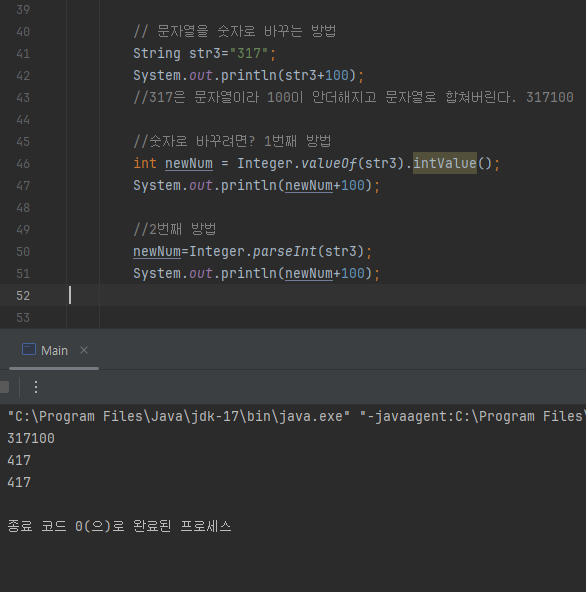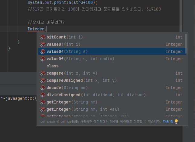 문자열이였던 str3을 int로 변환하여 100과 더해진 값 확인가능~!