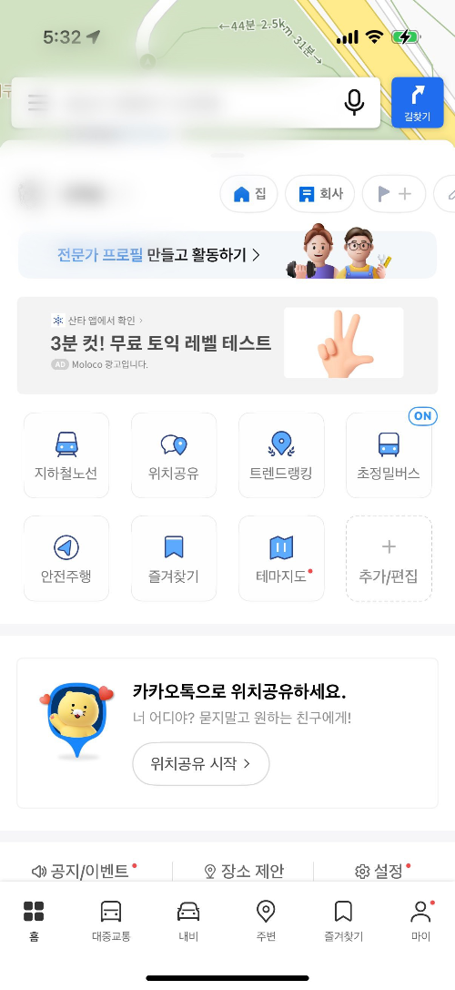 내 위치에 따른 다양한 가게 정보들, 주변 정류장의 버스 도착시간 확인, 자동차 네비게이션, 택시 기능까지