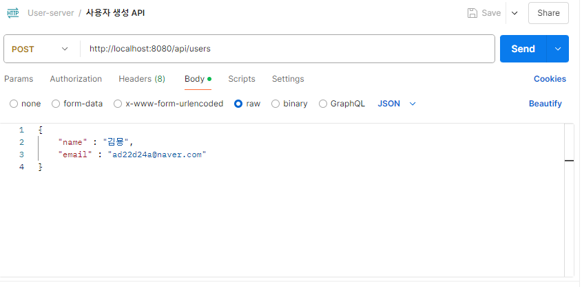 Body - Json문으로 들어갑니다. 맞게 양식 작성하기
