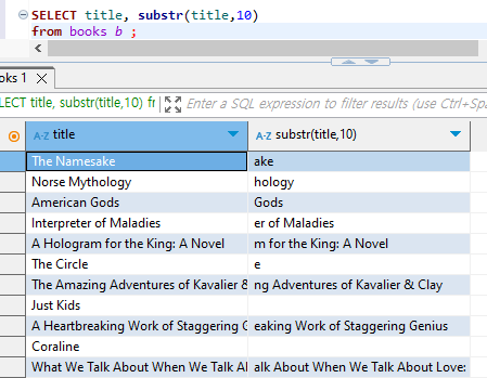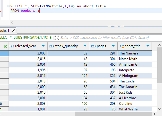 SELECT title, SUBSTRING(title,1,10) as short_title