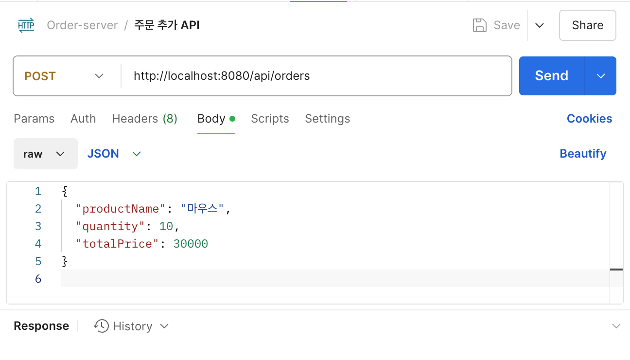 - `OrderRequest` 객체를 매개변수로 받아 주문을 생성합니다.