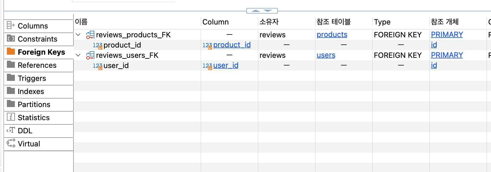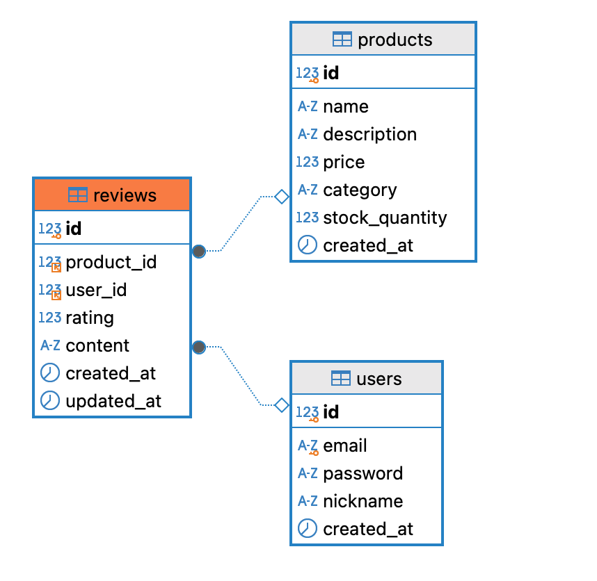 //리뷰테이블에서 product_id는 여러번 반복될 수 있음 but product 테이블에서는 product_id는 unique 함
