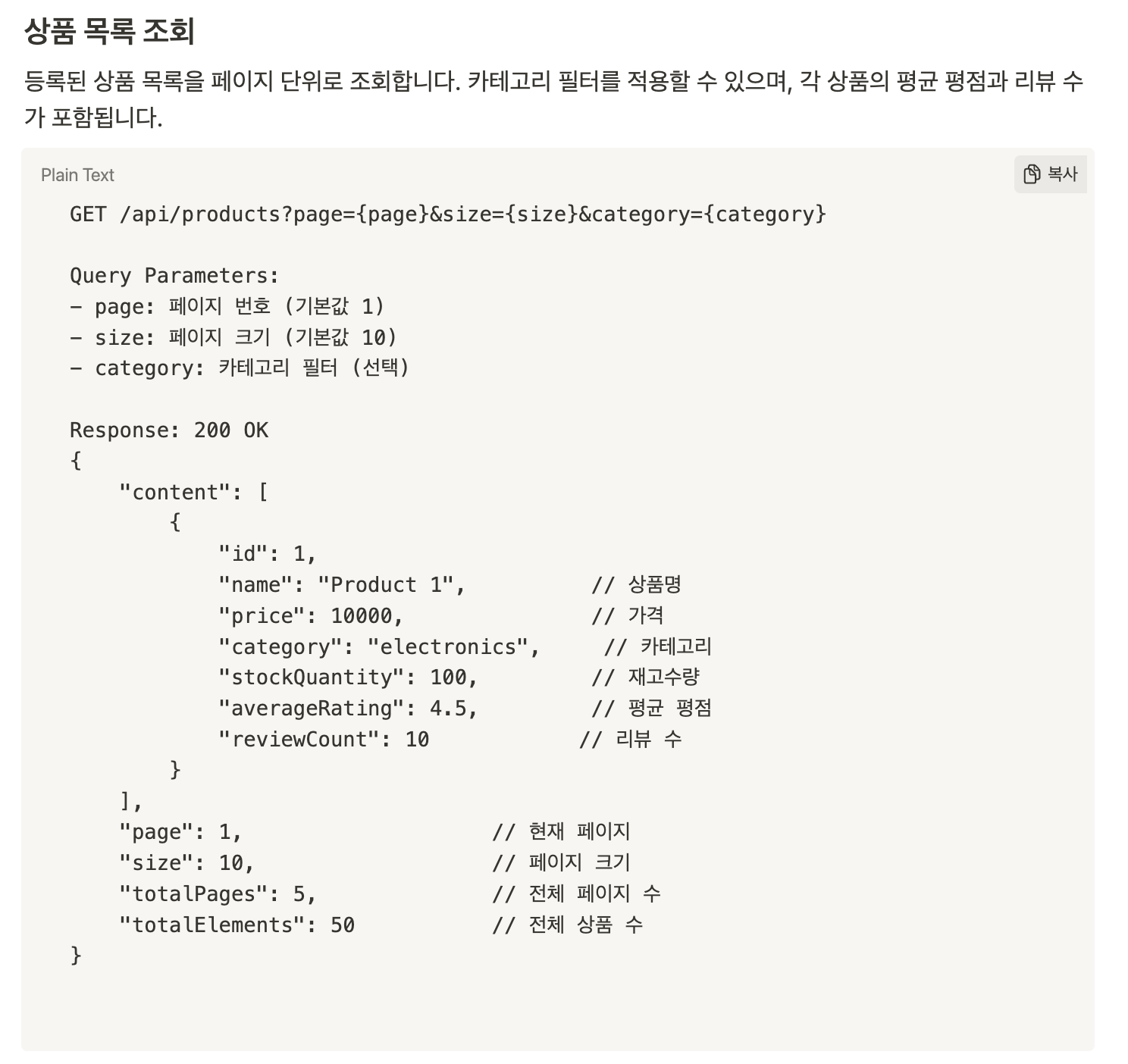 /// 상품 목록 조회