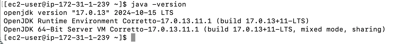 Amazon Corretto JDK 17 설치- $ sudo yum install java-17amazon-corretto