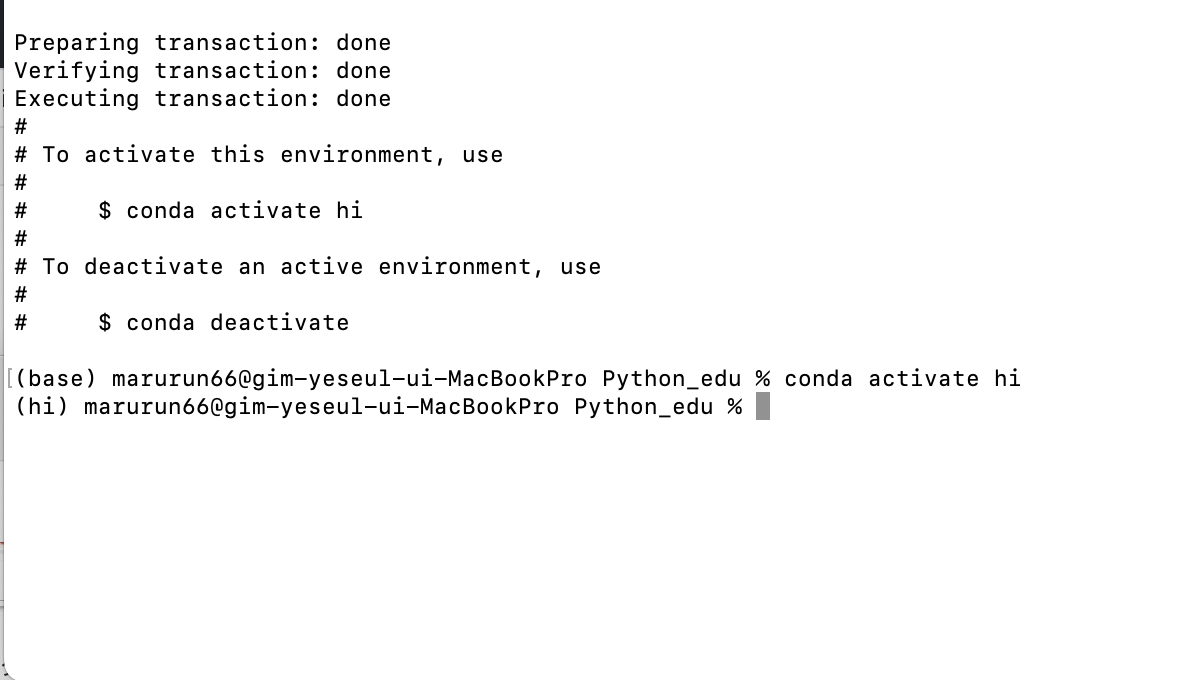 예: "hi"라는 이름의 가상환경 생성: