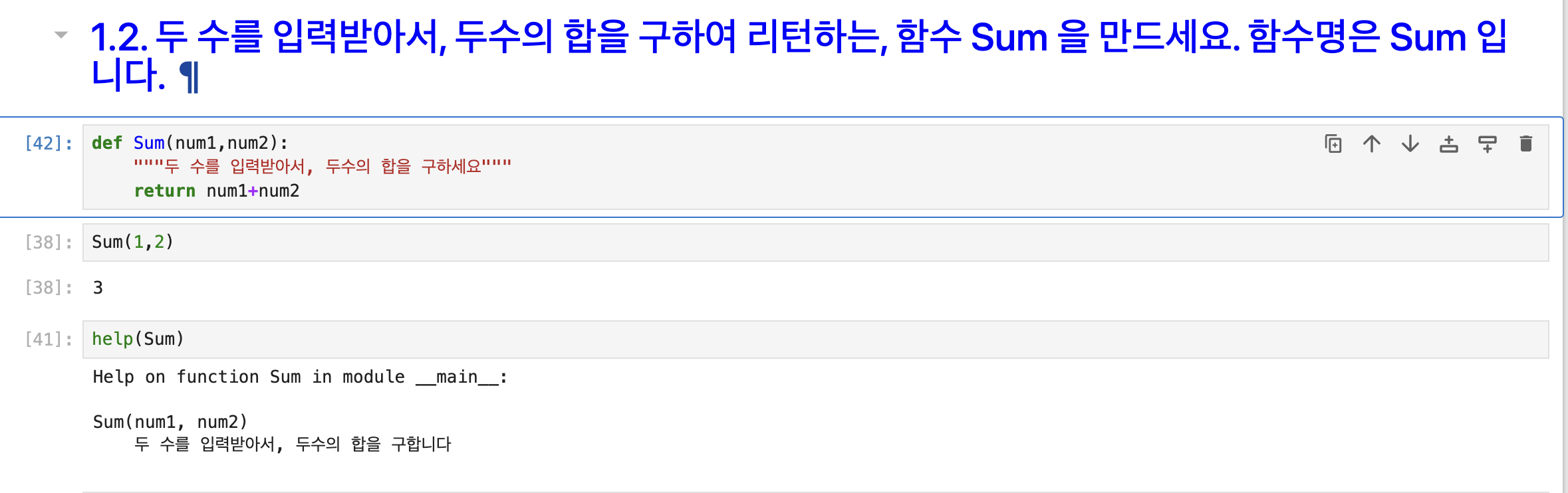 help(Sum) 으로 주석 내용 확인 가능