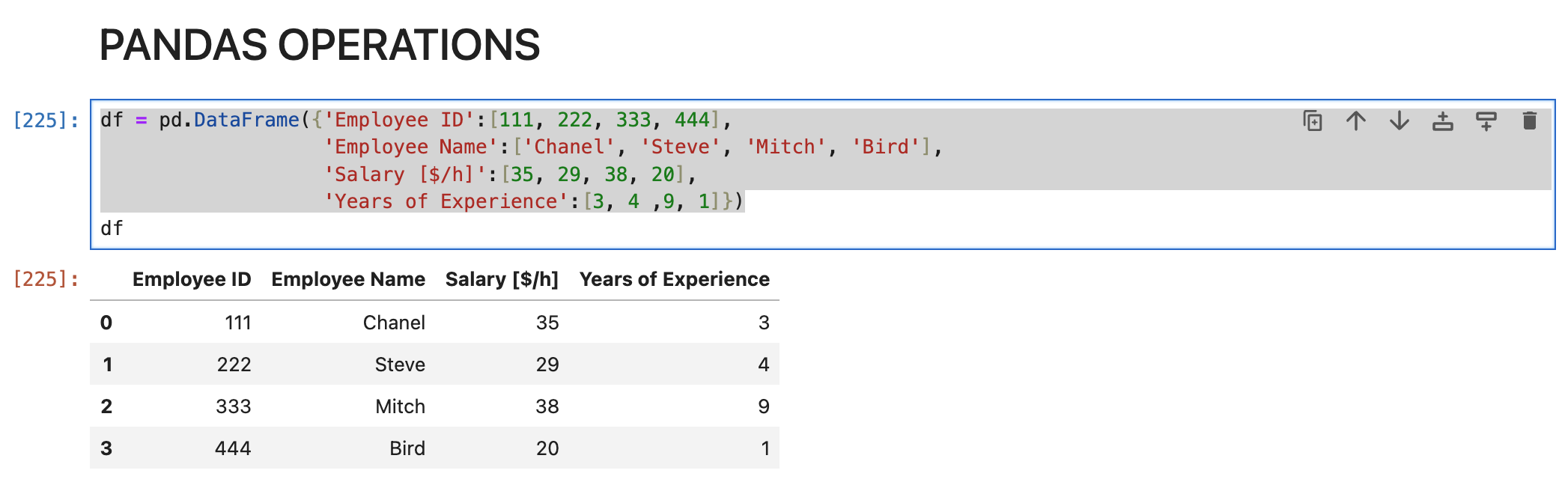 df = pd.DataFrame({'Employee ID':[111, 222, 333, 444],