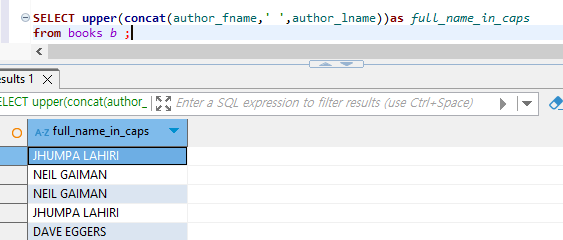SELECT concat(upper(author_fname),' ',upper(author_lname)) as full_name_in_caps