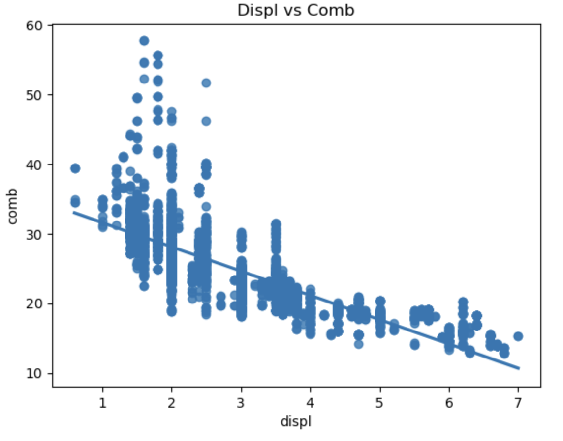 plt.title('Regression Plot of displ vs comb')