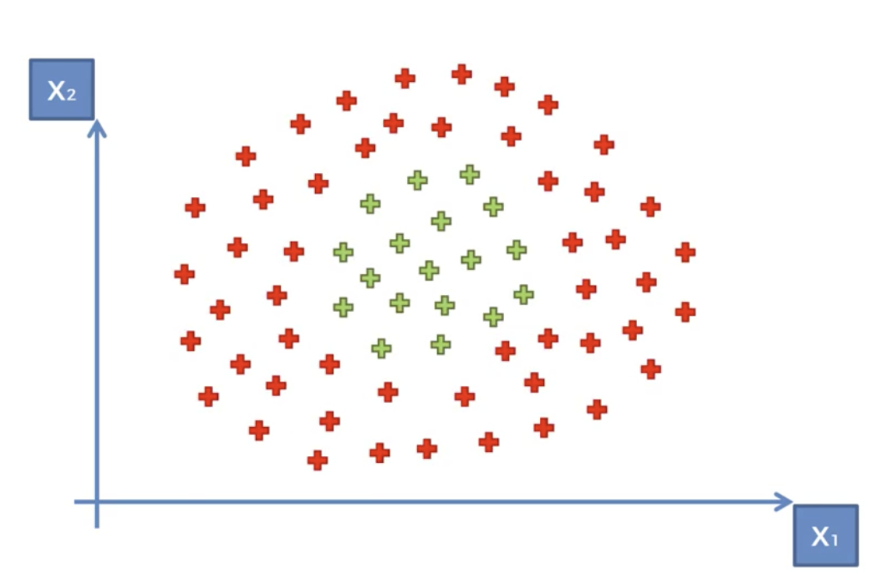 실제 데이터는 대부분 선형적으로 분리되지 않기 때문에, SVM은 커널 트릭(Kernel Trick)을 사용하여 데이터를 더 높은 차원의 공간으로 변환합니다.