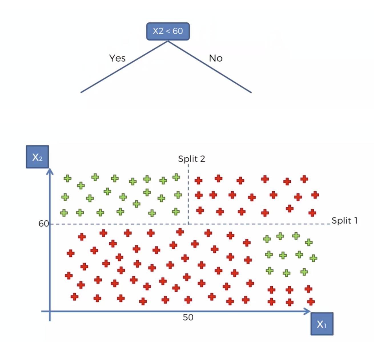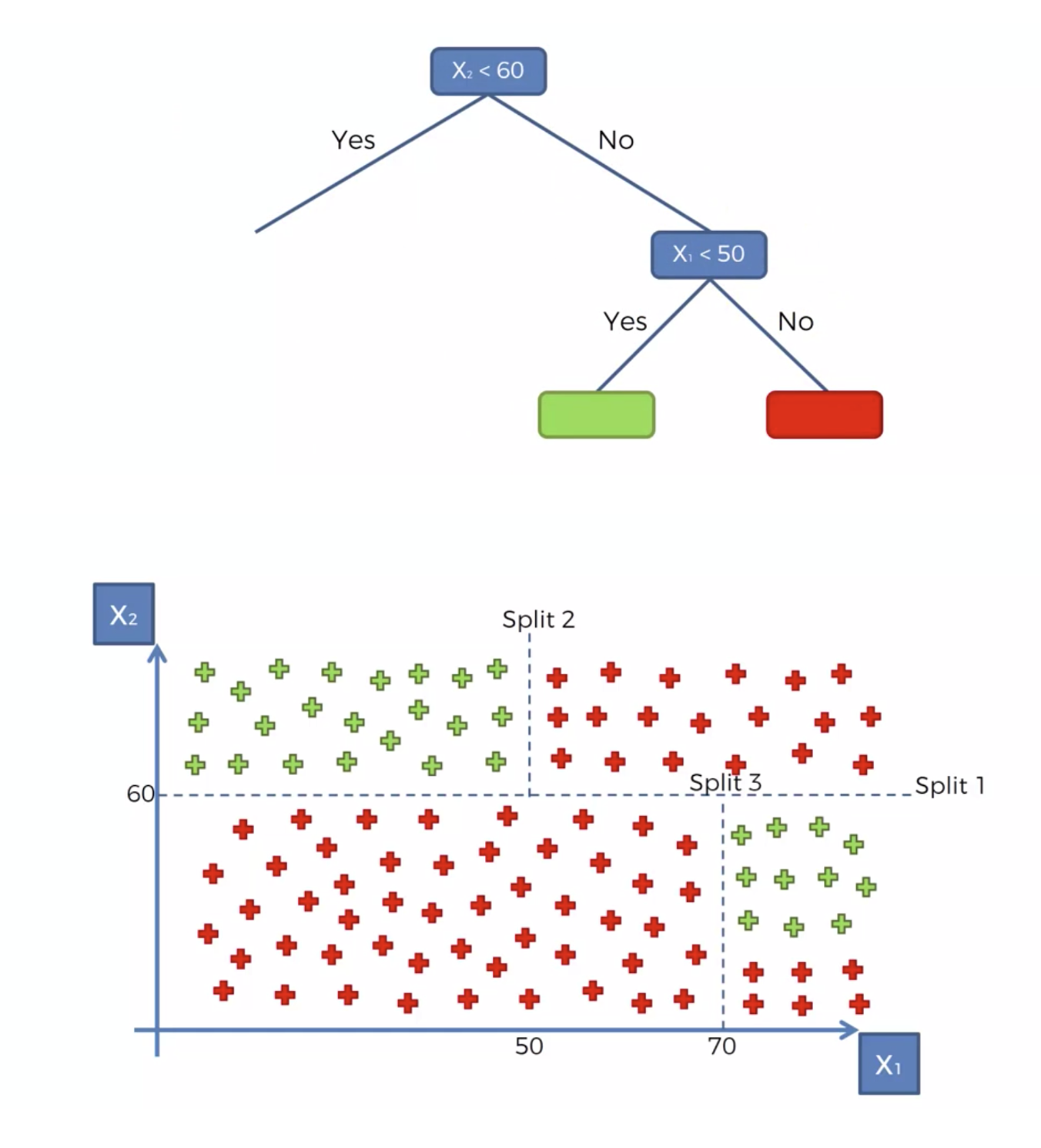 - 각 분기에서 데이터를 나눌 때 정보의 순도를 최대한 높이는 방향으로 결정됩니다. 대표적으로 엔트로피(Entropy)와 지니 계수(Gini Index)를 사용합니다.