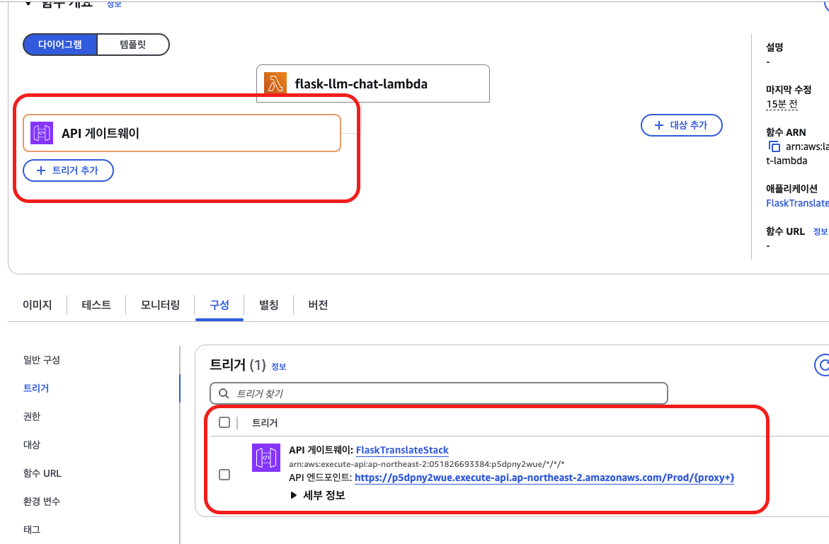 - lambda_function.lambda_handler를 실행하여 Lambda가 Flask를 호출하도록 설정