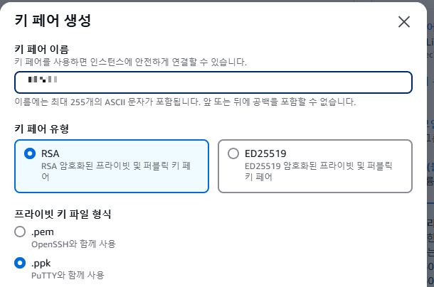 키페어(.pem-윈도우즈 외/ .ppk-윈도우즈, Putty)는 중요파일이니 분실되지 않도록 주의!