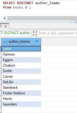 SELECT DISTINCT concat(author_fname ,' ',author_lname)as full_name