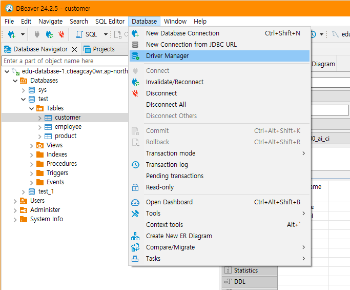 Database > Driver manager > Libraries > add file > mysql-connector-j-9.1.0.jar 선택