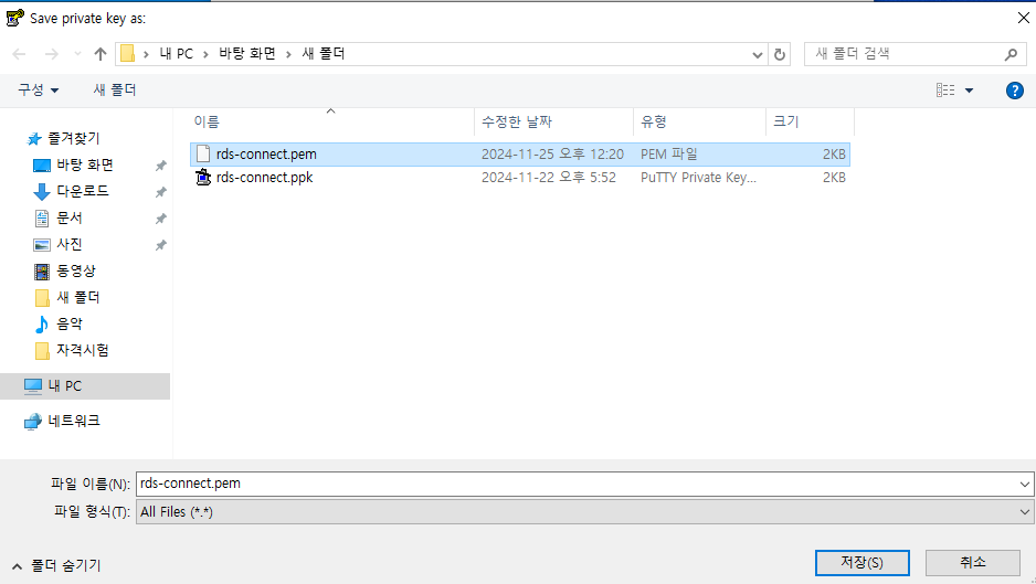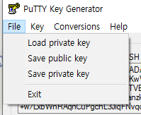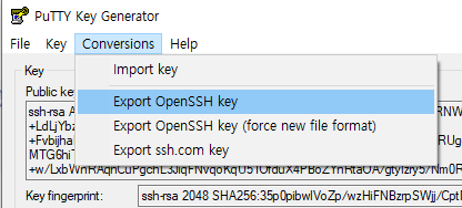File - load private key > .ppk 키 로드 > Conversions -Export openssh key