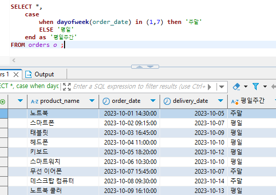when time(order_date) between '12:00:00' and '23:59:00' THEN '오후'