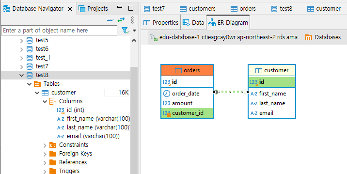 orders 테이블의 customer_id와 customers데이터의 id를 연결해보겠습니다.