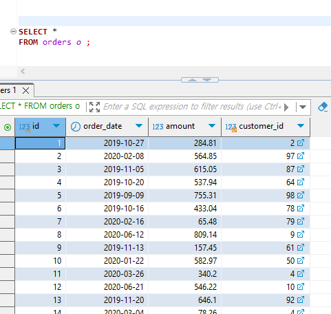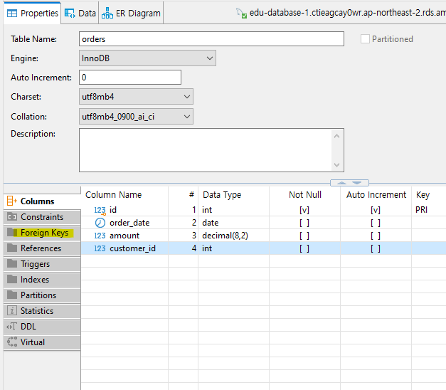 연결하고자 하는 테이블 컬럼 (orders의 customer_id를 연결하고자하므로 orders 컬럼에서)