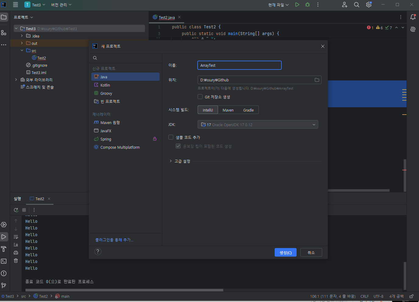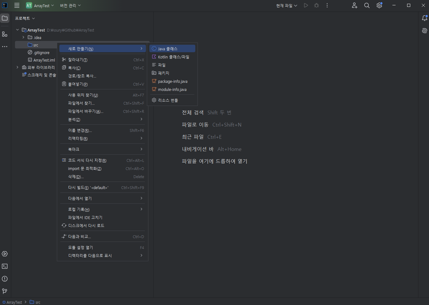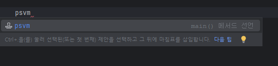 'psvm'(public static void main)을 입력하면 IntelliJ IDEA에서 Java의 main() 메소드가 자동으로 생성됨