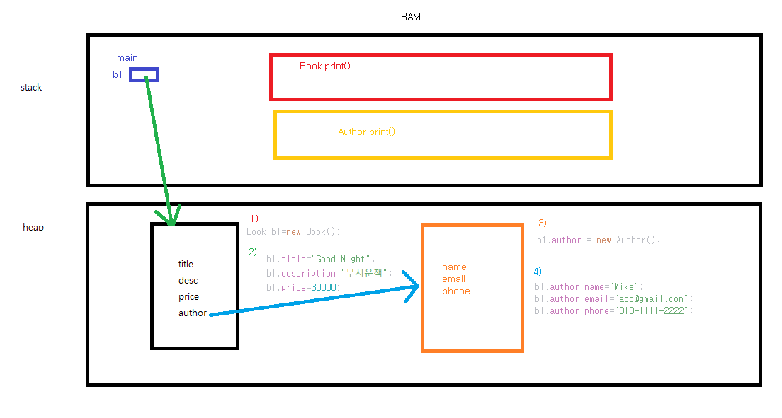 - Book 객체와 Author 객체가 힙 메모리에 저장됩니다.