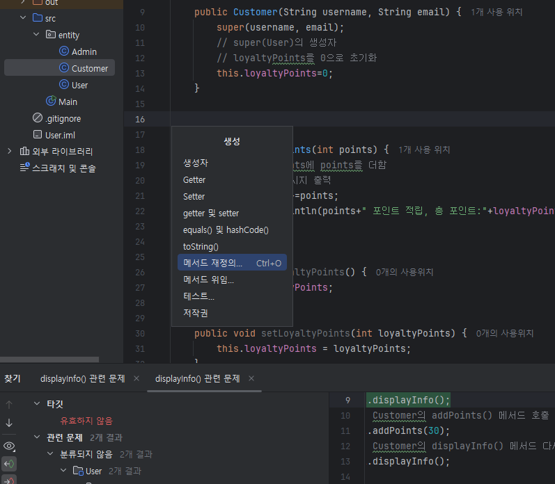 // 이 클래스에 맞게 재작성 했다는 뜻