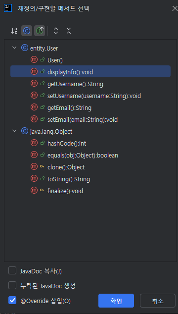// @ 어노텐션 Override : 다른사람이 봐도 아 재작성한거구나 알수있음