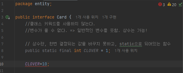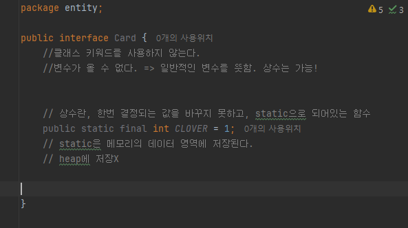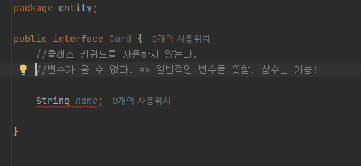 인터페이스는 일반적인 변수가 올 수 없다. (상수 static는 가능!)