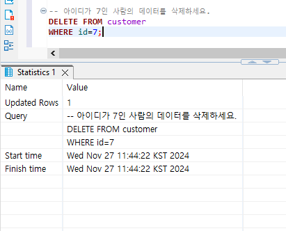 Delete from 구문은 Where 조건문으로 작동합니다.