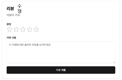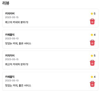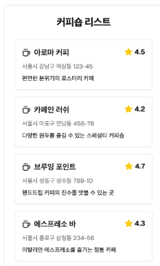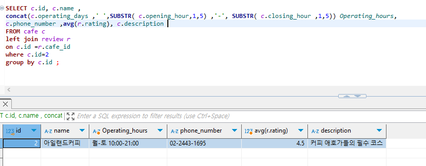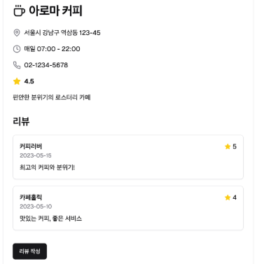 필요 컬럼: 카페이름, 주소, 설명, 평균별점